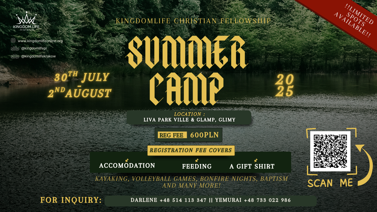 Summer is calling, and we are answering with our SUMMER CAMP 2025!! We’re so excited to invite you to Kingdom Life’s Summer Camp. It will be a time of refreshing, connection, fun, and fire for Jesus!